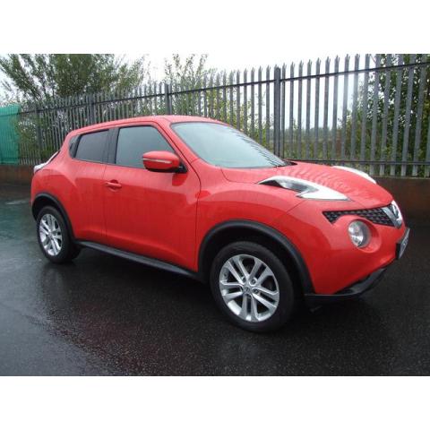 *FINANCE CAN BE ARRANGED CALL FOR A QUOTE TODAY* NEW INTO STOCK.(142) NISSAN JUKE ACENTA PREMIUM 1.5 DIESEL 6SPEED- 5 DOOR. A LIKE NEW CONDITION CAR WITH LOTS OF EXTRAS INC-ALLOYS, SAT NAV, BLUETOOTH, COLOUR REVERSING CAMERA, DAY-RUNNING LIGHTS, FRONT FOGS , CRUISE CONTROL AND FINISHED IN CHILLI RED PAINT. IT IS AN UNCONVENTIONALLY STYLISH SUV CROSSOVER WITH A RAISED DRIVING POSITION GIVING A GOOD VIEW OF THE ROAD AHEAD AND GREAT EASE OF ACCES IN AND OUT WITH ITS RAISED HEIGHT. THE 1.5 DIESEL ENGINE IS VERY FUEL EFFICIENT BOASTING 65 + MPG AND HAS LOW ROAD TAX OF JUST €190 PER YEAR. IT WILL BE SOLD FULLY SERVICED AND WITH A WARRANTY. FOR MORE INFO CALL FERGAL 0874403001 TONY 0876665151